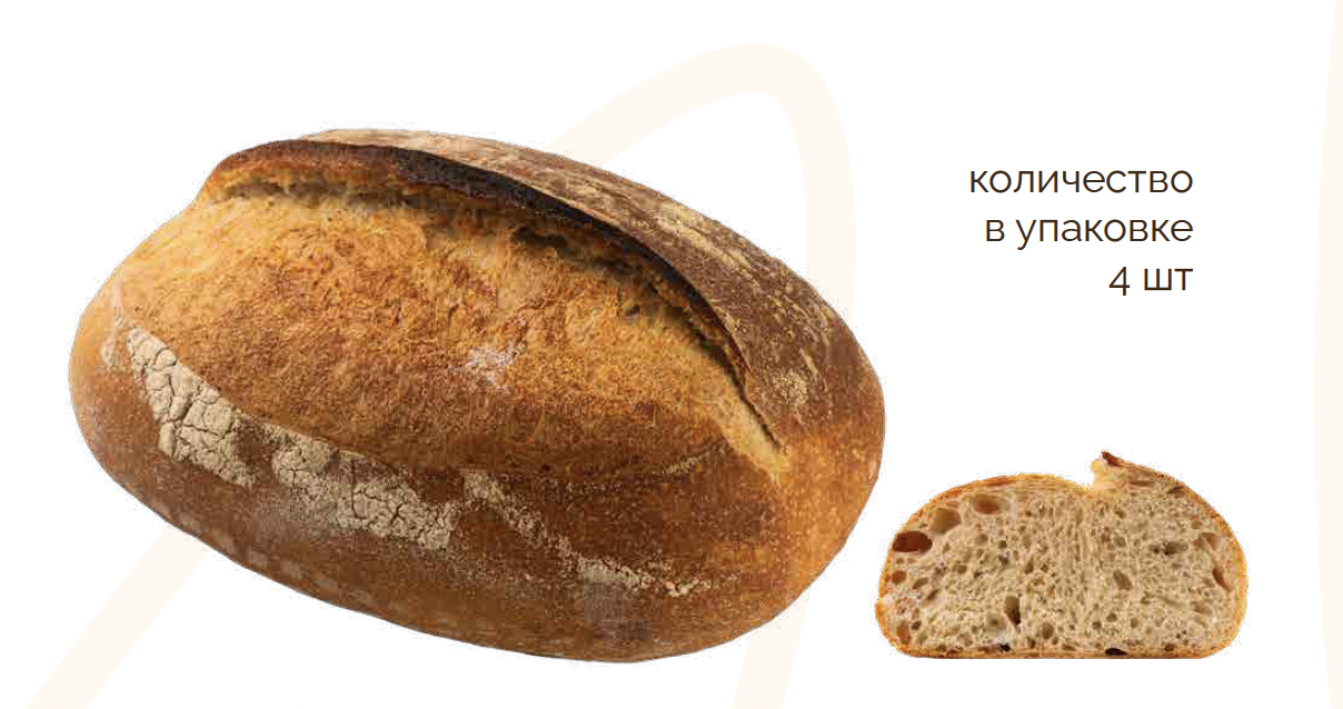 Состав: Мука пшеничная в/с, мука пшеничная ц/з (10%), пшеничная закваска (мука 1 сорт, вода), вода, соль.