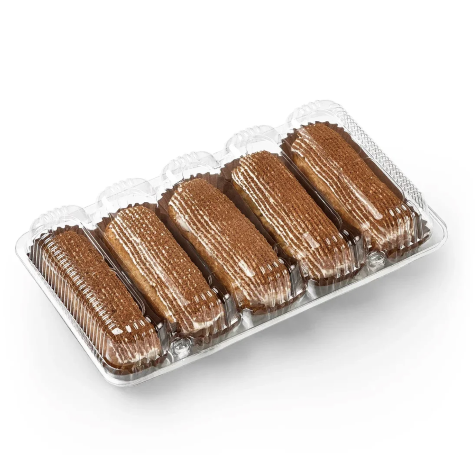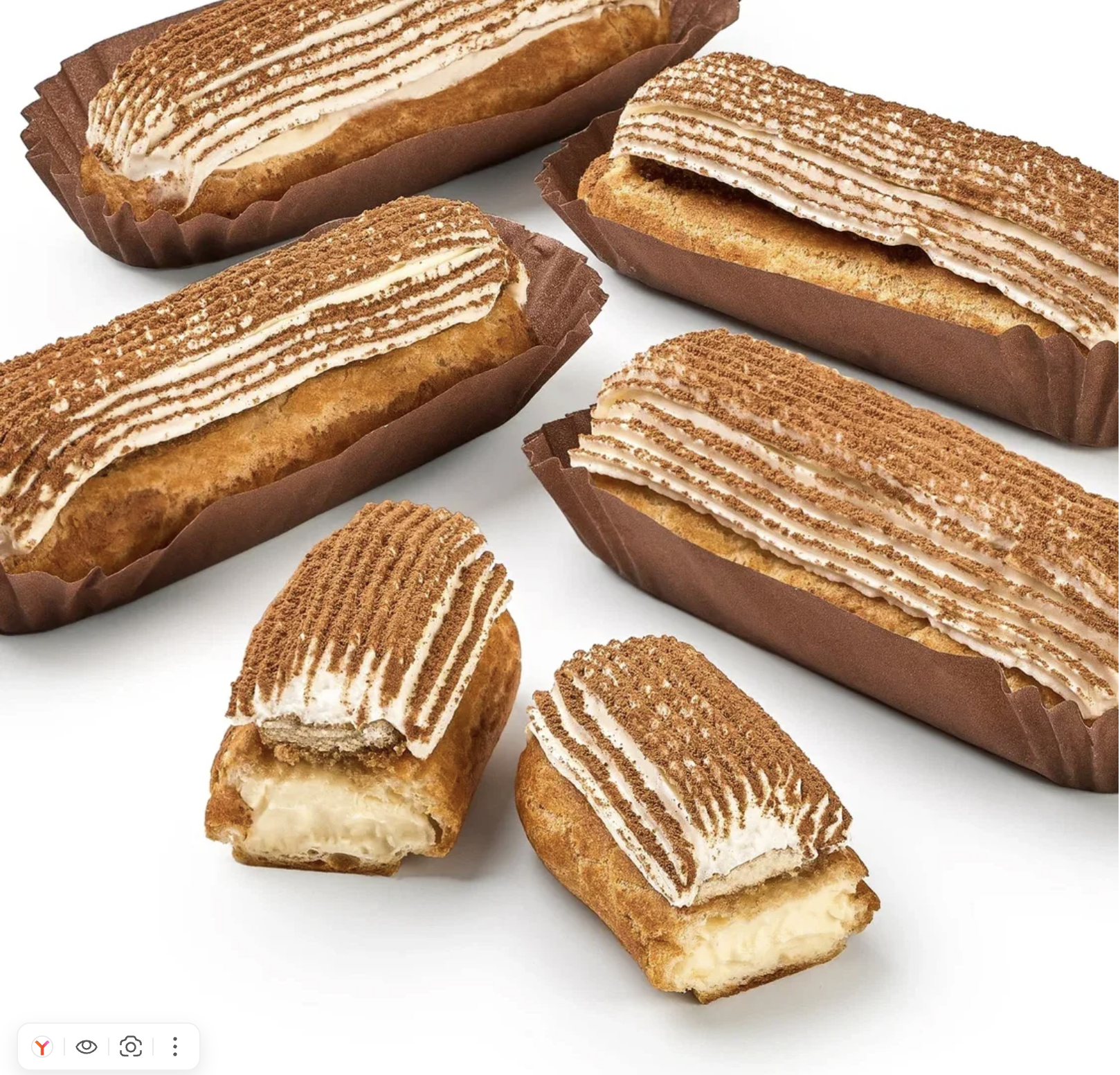 Изысканный кофейный десерт для настоящих ценителей кофе, состоит из нежного заварного теста, нижнего слоя сливочного крема, бисквита, пропитанного кофейным сиропом, верхнего сырного крема, декорирован какао.