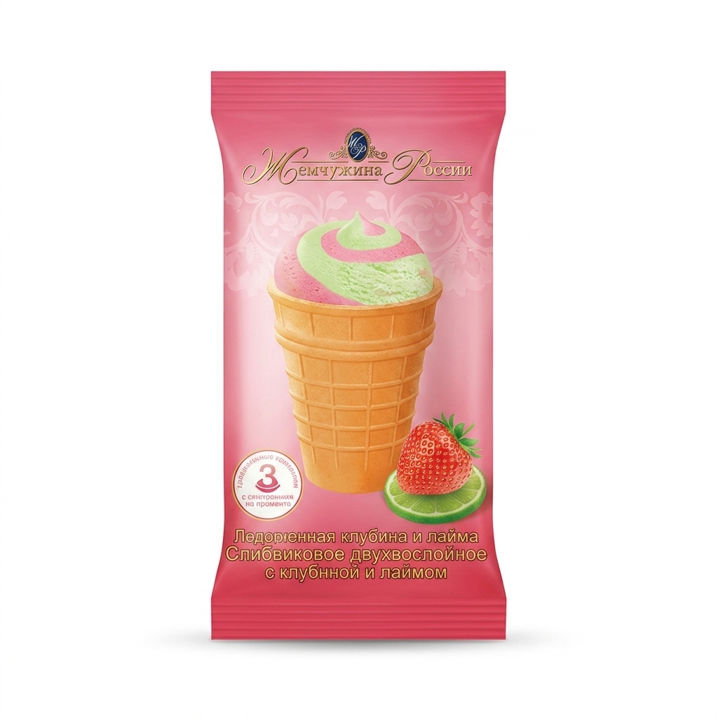 Двухслойное сливочное лайм-клубника вафельный стакан(90гр)