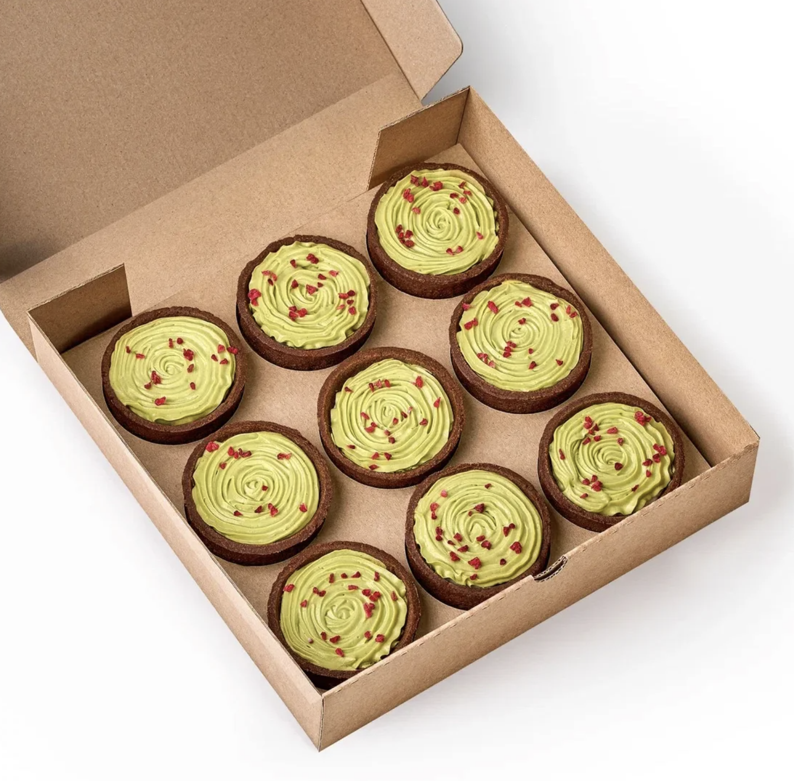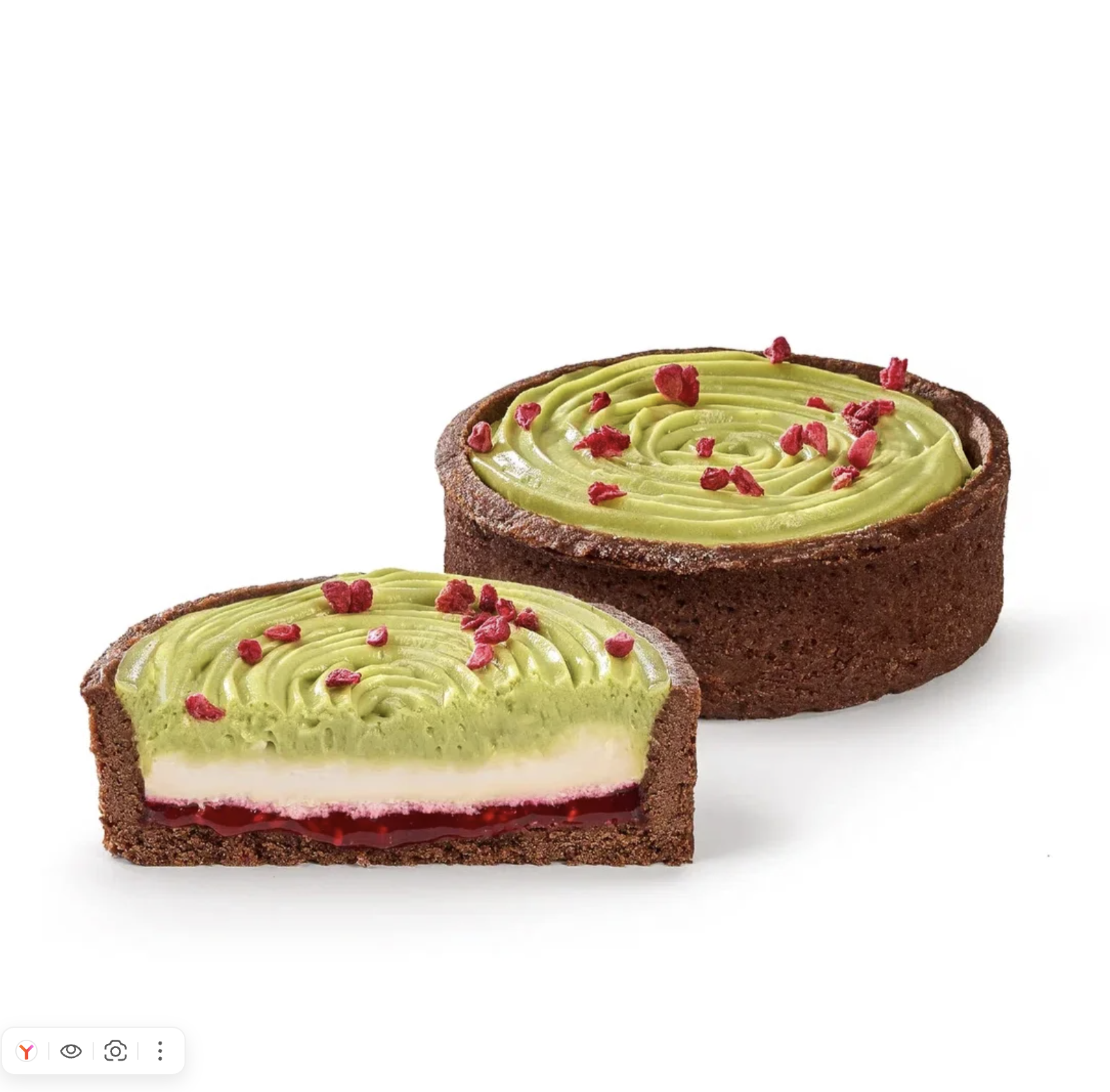 Гармоничное сочетание песочной основы с начинкой из свежей малины и фисташкового крема.