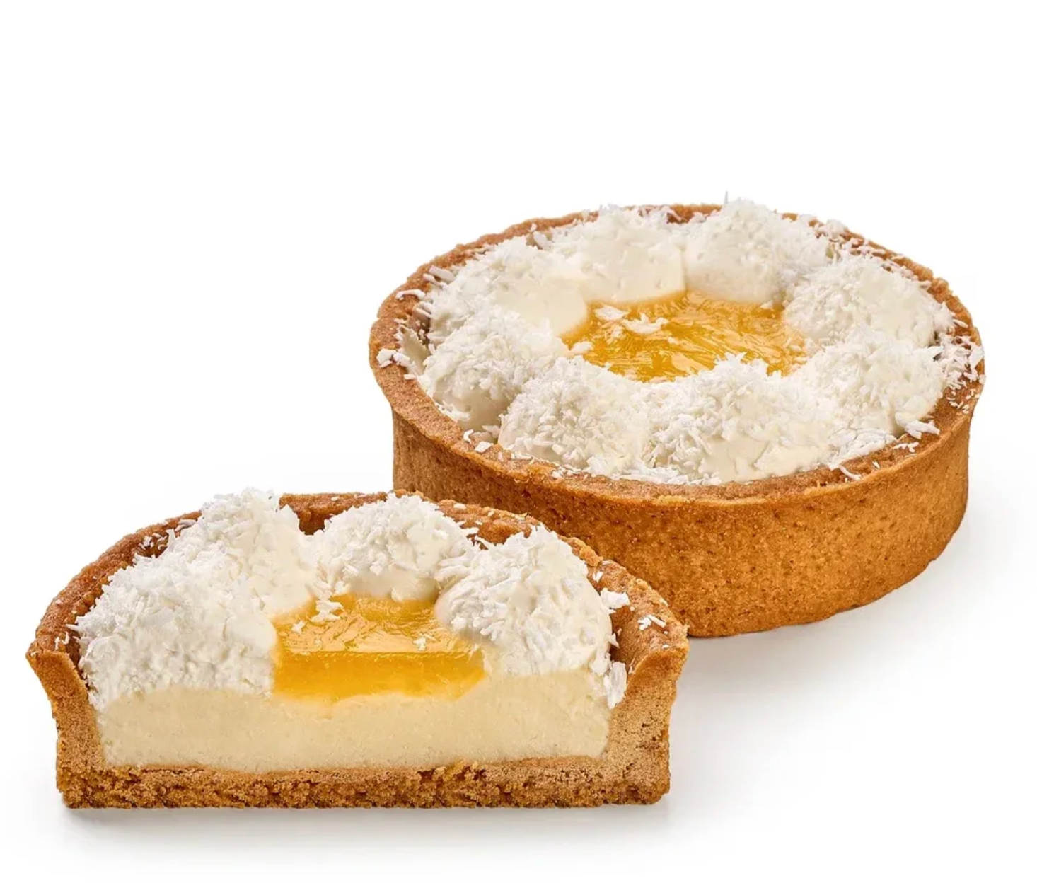 Песочная основа с легким заварным лимонным и сливочно-сырным кремом, декорированная кокосовой стружкой.